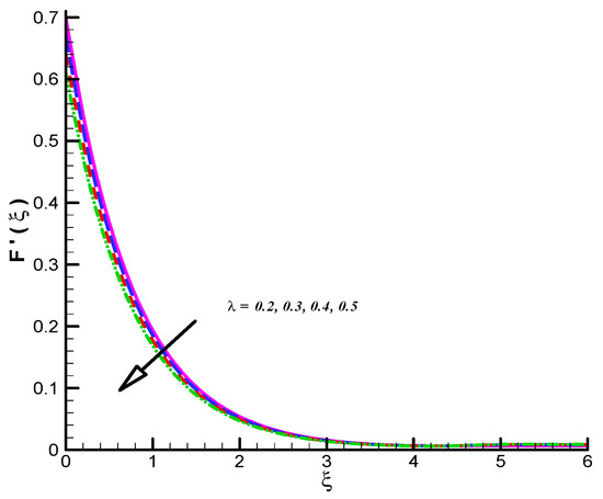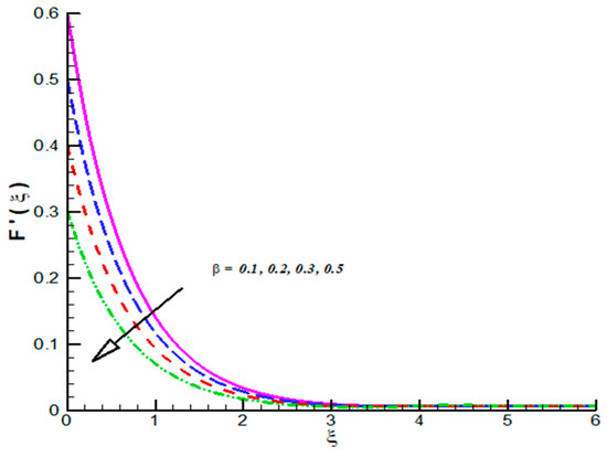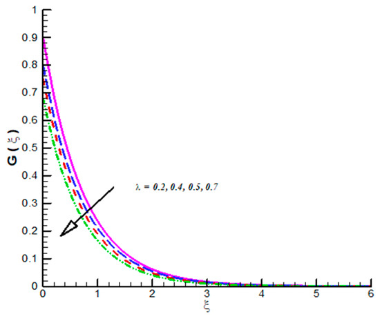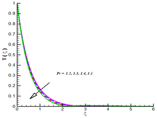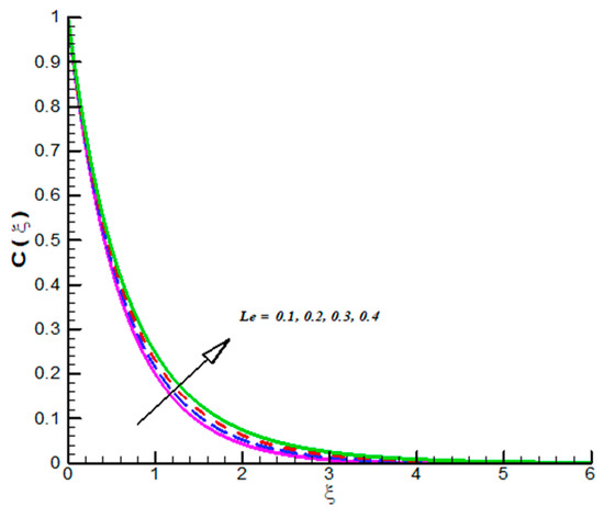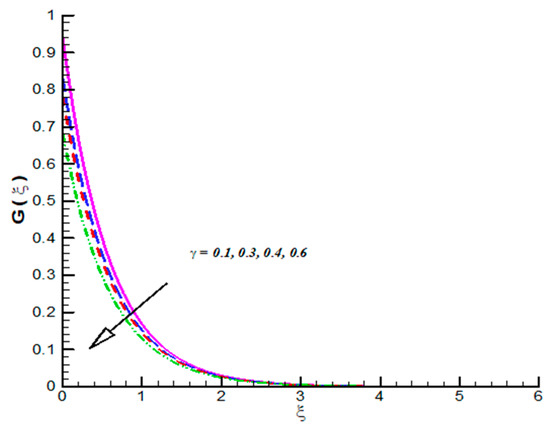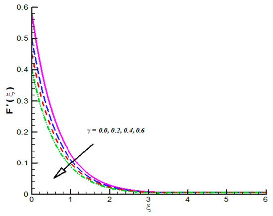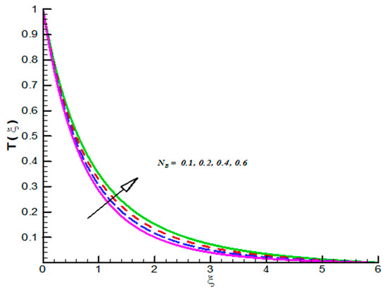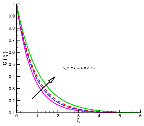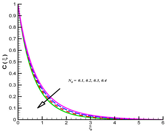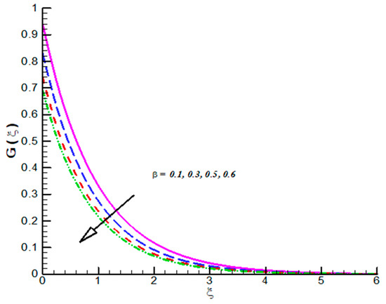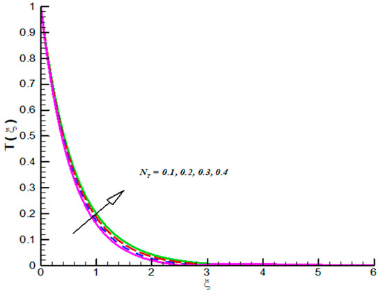The impact of on CF velocity is examined and provided via Figure 3. The CF velocity decreases for higher values of . This is due to activation of Lorentz force via increasing . Similarly, the effect of on tangential velocity is examined and given by means of Figure 4. It is important to note that the tangential velocity decreases for like radial one. The effect of on radial velocity is offer in Figure 5. It is noticed that the radial velocity reflects a diminishing nature for positive values of and the corresponding momentum boundary layer is also effected and admits decline values. Figure 6 gives the effect of on tangential velocity of Casson fluid parameter. It is observed that the tangential velocity decreases for slip parameter. The Casson fluid temperature is examined and provided via Figure 7, Figure 8 and Figure 9. Particularly, Figure 7 is plotted against while Figure 8 is used to identify the influence of Pr on . Figure 9 reports influence of on . From these figures we observed that Casson fluid temperature increases towards , but opposite trend is testified for Pr. Figure 10, Figure 11 and Figure 12 reports the impact of on . In detail, Figure 10 paints the effect of on . The Casson concertation decreases for positive variations in Le. The effected significantly towards . Figure 11 is evident that the results decline values in for both zero and non-zero values of . Such decreasing trend is due to higher values of Brownian force. The change in is observed towards and offer in Figure 12. The higher values of corresponds increasing trends in and related momentum boundary layer. In this attempt the MHD Casson nanofluid flow brought by rotating solid disk in the presence of slip conditions is examined. For comparison purpose, when Casson fluid parameter approaches to infinity our problem absolutely match with Hayat et al. [32]. In this work they studied nanoparticle aspects on viscous fluid flow due to rotating disk along with slip effects numerically. We have compared the variation of both Nusselt and Sherwood numbers with their findings as shown in Table 1 and Table 2. One can see from these tables our finding match with existing values in a limiting sense. The trifling difference is due to choice of numerical method used in both attempts. Their values are obtained by build in command in Mathematica while we have used self-coded algorithm (shooting method with R-K scheme) subject to Casson nanofluid flow induced by solid rotating disk. Beside this one can extend idea to computational fluid dynamics in context of industrial and standpoints, see References [32,33,34,35,36,37,38,39,40,41,42].