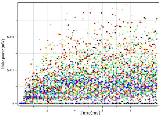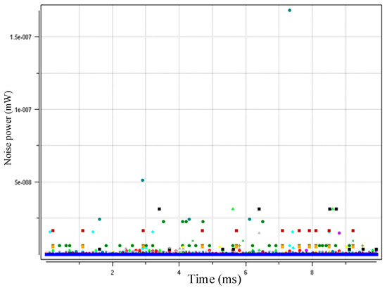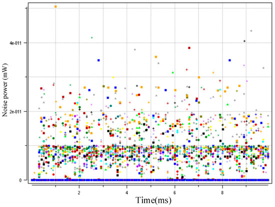 Figure 5, Figure 6 and Figure 7 show the interference distributions of the three algorithms. MAXPCA produces the most interference with e−7~e−8 level/magnitude. However, MINPCA generates less interference with e−10~e−11 level/magnitude due to its low sending power. DCGAPC shows the least interference, with only e−11 level/magnitude. Because this algorithm can regulate the sending power via the condition of the channels, its interference is less than the other two methods.
