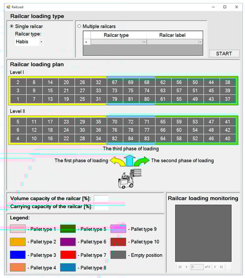 Figure 3. Loading scheme for a Habis railcar (Nh = 2, Nl = 14 and Nw = 3): RailLoad application start window. - 4.