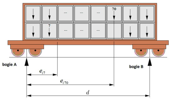 In the Republic of Serbia, the loading of freight railcars is defined by the regulations laid down in the documents [41,42]. The UIC and railway administrations have adopted standards on the loading of railcars used in international transport, the so-called RIV cars (Italian: Regolamento Internazionale dei Veicoli, RIV) and these regulations have been incorporated into the mathematical model and then implemented in the software described in Section 6.