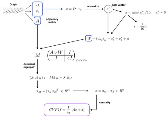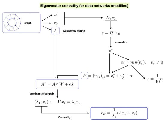 Figure 1 shows a schematic representation of the eigenvector centrality model proposed in [] for networks with data taking into account the modifications proposed.
