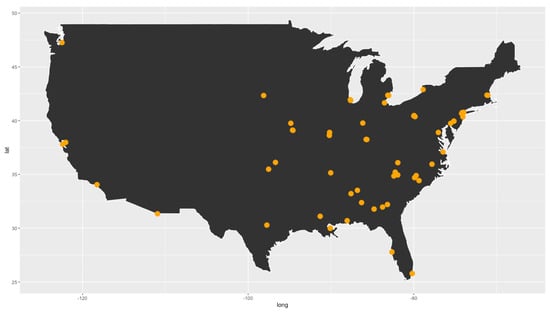 A portion of the dataset collected is shown in Table 3, while the geographical location of the artists’ birth places can be seen in the USA map in Figure 8, where the large production of artists in the east and southeast of the country is clear.