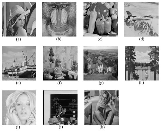 Test images: (a) Lena, (b) Baboon, (c) Peppers, (d) F-16, (e) Fishing Boat, (f) Girl, (g) Gold hill, (h) Sailboat, (i) Tiffany, (j) Toys and (k) Barbara.