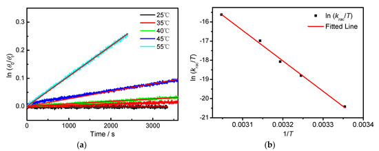 The obtained krac values were analyzed according to the Eyring Equation (A2), as follows: