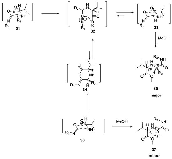 Transtech Pharma patented the use of α-amino acids as chiral auxiliaries for the synthesis of enantiomerically pure N-alkyl-N-acyl-α-amino amides 15, which after the cleavage of both the chiral auxiliary amine and the hydrolysis of amide, and the subsequent protection of the amino group, provided N-protected α-amino acids 30 (Scheme 5) [].