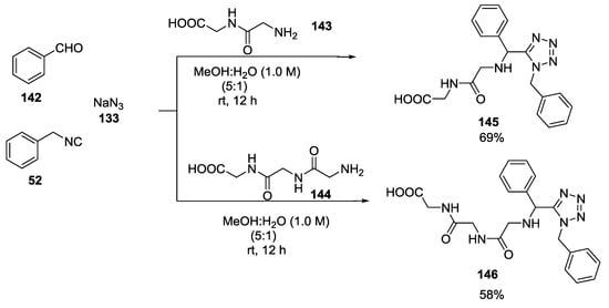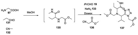 - Madhavachary, R.; Wang, Q.; Dömling, A. With unprotected amino acids to tetrazolo Peptidomimetics. Chem. Commun. 2017, 53, 8549–8552. [Google Scholar] [CrossRef]