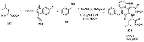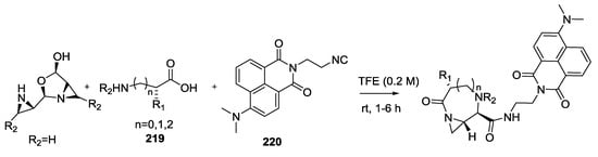 - Dömling, A. Recent developments in isocyanide based multicomponent reactions in applied chemistry. Chem. Rev. 2006, 106, 17–89. [Google Scholar] [CrossRef] [PubMed]