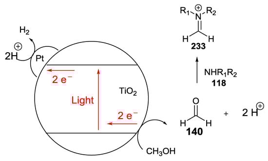 - Adolph, C.M.; Werth, J.; Selvaraj, R.; Wegener, E.C.; Uyeda, C. Dehydrogenative Transformations of Imines Using a Heterogeneous Photocatalyst. J. Org. Chem. 2017, 82, 5959–5965. [Google Scholar] [CrossRef] [PubMed]