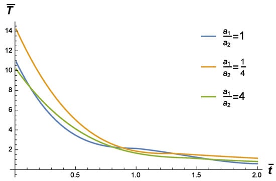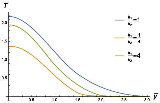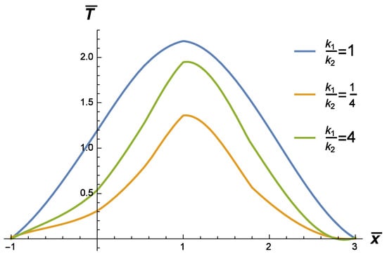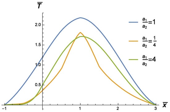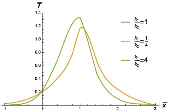 Temperatures in joint half-planes are presented in Figure 1, Figure 2, Figure 3, Figure 4, Figure 5 and Figure 6 for varied combinations of parameters. Calculations have been carried out with the following nondimensional quantities: