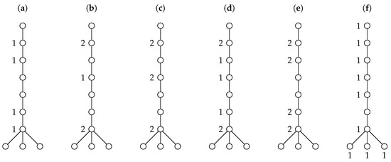 From now on, suppose that and let for some . To conclude the proof we only need to show that . We can assume that is a -function satisfying that is maximum. As x and u are adjacent, and hey are support vertices, , so that is a TWRDF on and, as a consequence, . Therefore, , as required. □