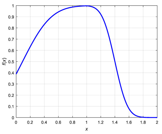 The plot of the function f(x) defined in Equation (16).