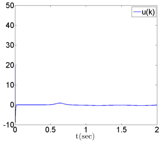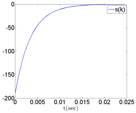 In the following, we give an example to demonstrate the effectiveness of the proposed control method. The simulation tool of MATLAB is used. In the simulation test, first, the initial conditions are selected as . Then, is chosen such that . Therefore, the switching surface, , can be designed as follows: