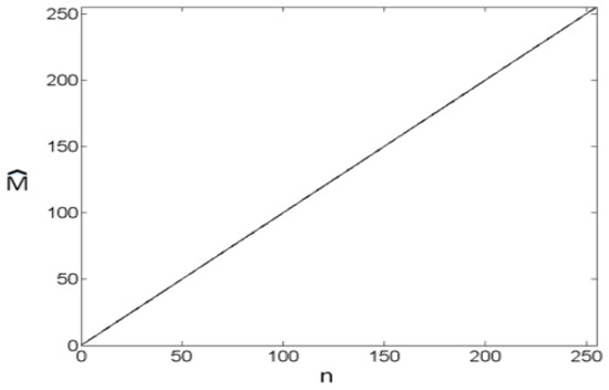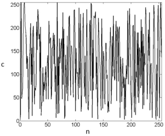 Here, we use an example to test the above preliminary results. In the simulation test, the parameters are defined as , where are random positive integers obtained by the numerical correction mechanism for the master-slave chaotic random signal, are calculated by the above formula, and then the original signal , into the encryption function to obtain the encrypted signal , and finally, we will operate the decryption function to obtain the recovered signal , as shown in Figure 7, Figure 8 and Figure 9.
