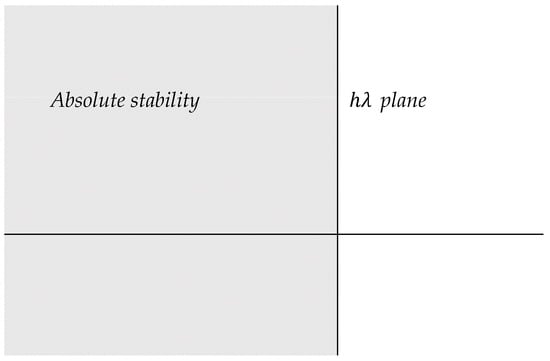 The region of absolute stability is the set of points for which the method produces a solution that never increases in magnitude, i.e., (see [20]). The chosen step size h should lie within the region of absolute stability of the numerical method.