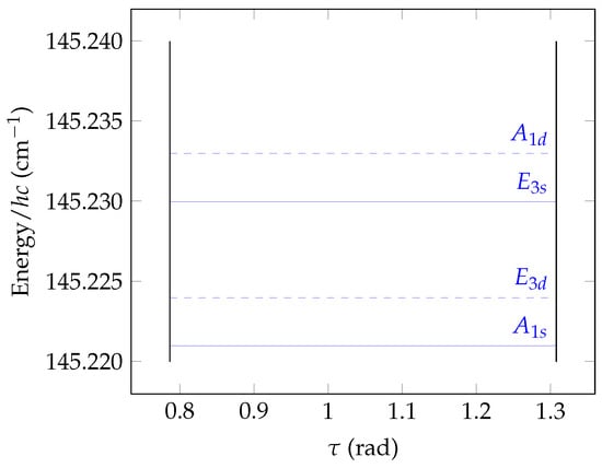 - Hougen, J.T. A Group-Theoretical Treatment of Electronic, Vibrational, Torsional, and Rotational Motions in the Dimethylacetylene Molecule. Can. J. Phys. 1964, 42, 1920–1937. [Google Scholar] [CrossRef]