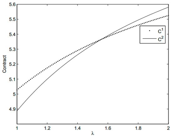 According to the manager’s utility function, the manager’s utility is related to the final output and contract . If we combined with Equation (2) and Equation (8), it is not difficult to get that the sales revenue process is also related to variable .