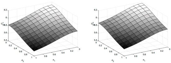 In Section 4.2, according to the conclusion of Proposition 4, we get the expression of the optimal contract for each salesman. From the expression, we can see that agents’ contract is related to variables and , not directly to the final sales revenue . Therefore, we need to analyze the manager problem to get the explicit solution of incentive contract.