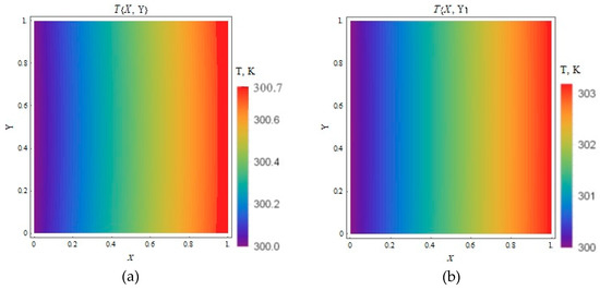 where is the temperature solved subjected to uniform heat flux at moving wall only while denotes the temperature field subjected to uniform heat flux at both plates. Notably, fulfills the governing thermal energy equation, Equation (6) duly.