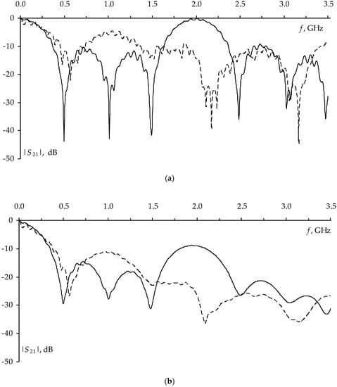 - Chernikova, E.B.; Belousov, A.O.; Gazizov, T.R. Research of frequency characteristics of a reflection symmetric modal filter. In Proceedings of the IEEE Siberian Symposium on Data Science and Engineering, Novosibirsk, Russia, 30–31 October 2018; pp. 74–78. [Google Scholar]