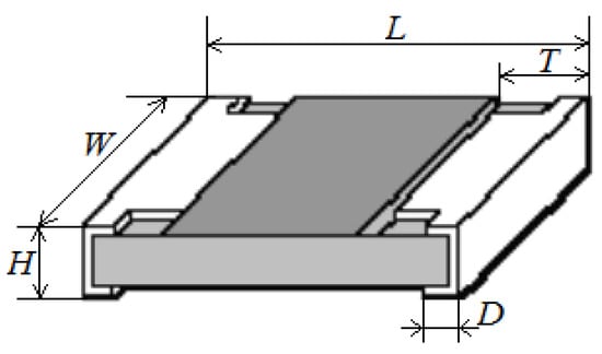 To provide matching, the resistors of type 0603 with a resistance of 50 Ω (Figure 14) are used; their dimensions are presented in Table 13. To enable the subsequent mounting of resistors, a CP with the size of 1.7 × 0.925 mm is installed at each end of the passive lines, with the distance between the reference CP and the CP for the resistor being 1 mm.