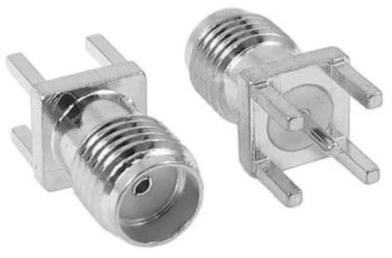 To connect the PCB with the measurement path, we need to install an SMA connector (Figure 15). For its installation, a CP of 0.85 × 0.925 mm is installed at the end of the active line. The distance between the reference CP and the CP for the SMA connector is 4 mm.
