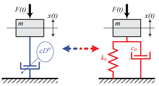 Schematic diagram related to the equivalence between α-fractional dissipative model and emulated linear Voigt-Kelvin model.