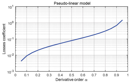 The evolution of losses coefficient for the emulated linear Voigt-Kelvin model, in respect to α-order of initial fractional derivative model.