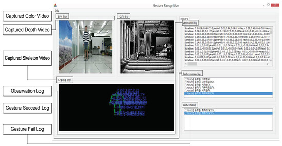 The gesture learning and recognition approach was implemented using the Microsoft Foundation Class library (MFC), which is based on the C++ language, in a Windows 8.1 environment. We stored all gesture data in Hadoop Distributed File System (HDFS). The OpenCV library was used to visualize each gesture image.