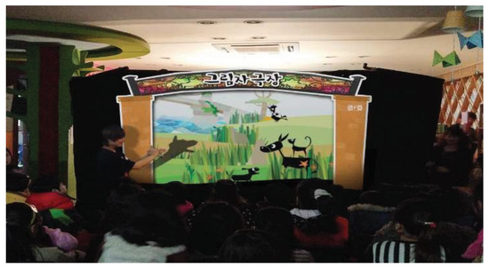 The proposed method was experimentally evaluated using a shadow puppet performance show. As shown in Figure 15, the actors create certain animations on the screen and interact with it using hand gestures.