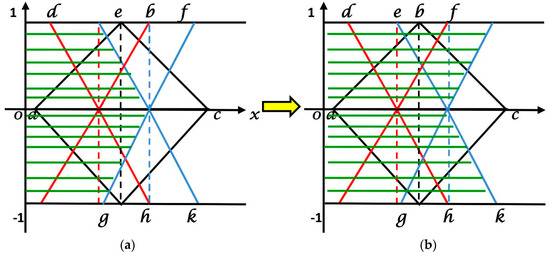 (a) Shaded Region of hesitant portion (Step I); (b) Shaded Region of hesitant portion (Step II).