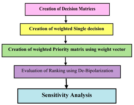 The novelty of this paper is to understand the behavior of the weights of different criteria on the ranking of the alternatives. For this reason, a sensitivity analysis was performed by interchanging the weights of the criteria. Using a sensitivity analysis, we observe a certain level of change in the attribute values and that, ultimately, is the best alternative, whereas the other alternatives change their ordering.