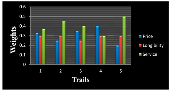 Let us consider a problem related to three different products and their distinctive attributes. We know that many products are available in the market and they have different components with different qualities and features. Therefore, this is multi-criteria decision-making problem with different types of decision makers. We define the problem as follows: , , are the alternatives; , , are the attributes.