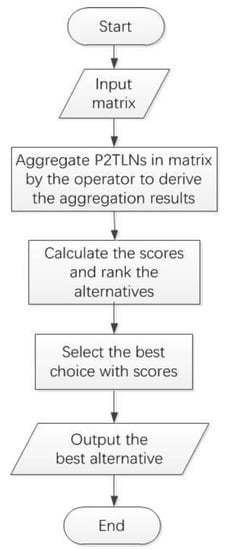 Next, we apply the ATT-P2TLWMSM and ATT-P2TLGWMSM operators to solve MADM problems in which the attribute values take the form of P2TLNs. The flowchart of the method is shown in Figure 2.