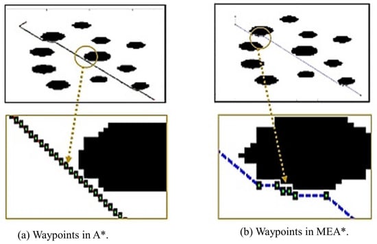 Fewer waypoints in MEA* generated path than A* generated path [].