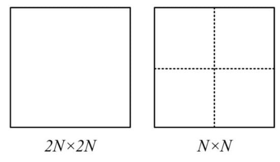 What is more, in the process of EMD coding, it is required that the value range of  has to be larger than  so that the base  integer  can be realized and every point  of the S-dimensional space can be reached. As the PU partition mode is mapped to be, so the number of possible PU partition modes in a CU has to be larger than 2S + 1. Besides, the distribution of 8 × 8 and 16 × 16 CUs is also taken into consideration. As shown in Figure 5, at either resolution, the quantity of 8 × 8 CUs is the most and quantity of 16 × 16 is the second most. Consequently, to balance all the effects of S discussed above, S is set to be 3 for 16 × 16 CUs, so that higher hiding efficiency and visual quality can be obtained, and capacity will not be low because of the second most quantity of 16 × 16 CUs. For 8 × 8 CUs, S is set to be 1 in case the visual quality decreases too much and the capacity can be assured with the largest ratio of 8 × 8 CUs and small S.