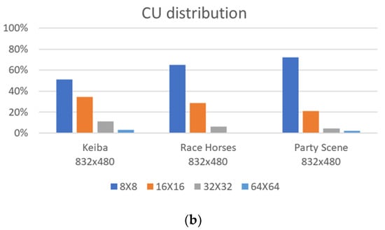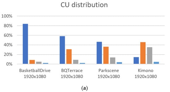 The distribution of CUs with different sizes. (a) CU distribution under high resolution; (b) CU distribution under low resolution.