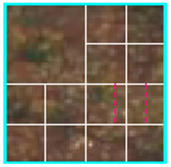 Magnified coding tree units (CTU) in the bottom-right corner from Figure 4a.