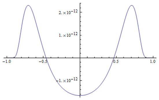 We fix . Using the Taylor expansions to Equation (4) as in Section 2, we obtain the right-hand side given by Equation (12). From the symmetry of , the first and third order terms with respect to vanish. The second order terms yield