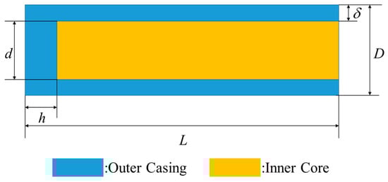 According to the known dimensions in Table 1, the specific parameters of the volume and mass of the outer casing and inner core of the conventional PELE projectile can be obtained as follows: