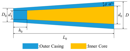 Similarly, the geometric relationship of the truncated cone-shaped PELE projectile can also be obtained. For ease of analysis, two intermediate quantities are defined: