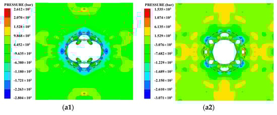 According to the simulation conditions in Table 4, the kinetic energy losses of PELE projectiles after perforating the target plate were counted, as shown in Table 5. The working condition numbers in Table 5 are defined as follows. Taking “#1-1” and “#1-2” as examples, it is explained that “-1” represents the conventional PELE projectile, while “-2” represents the truncated cone-shaped PELE projectile. The projectile velocity and target plate parameters corresponding to the “#1” in Table 5 are consistent with the information corresponding to the “#1” in Table 2 and Table 4.