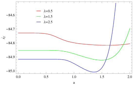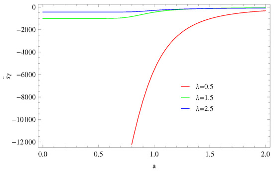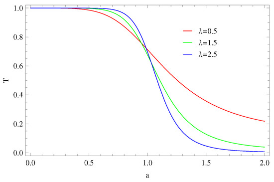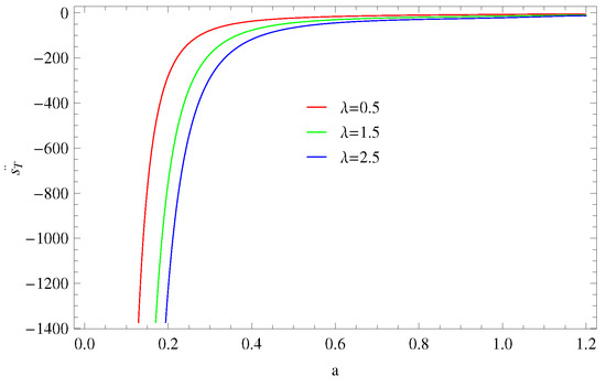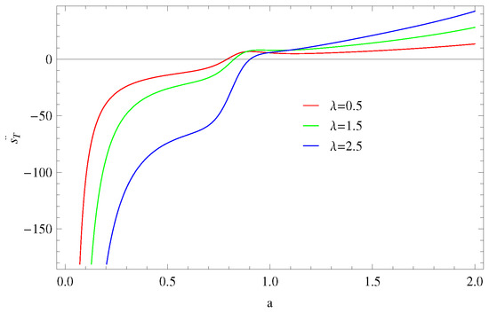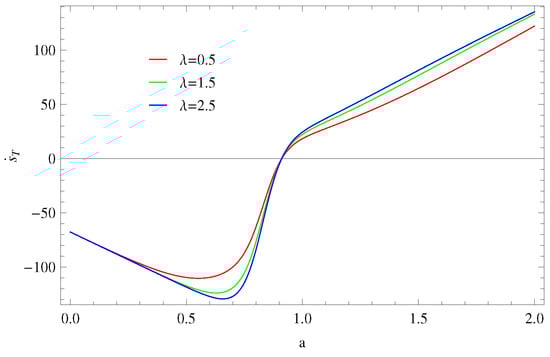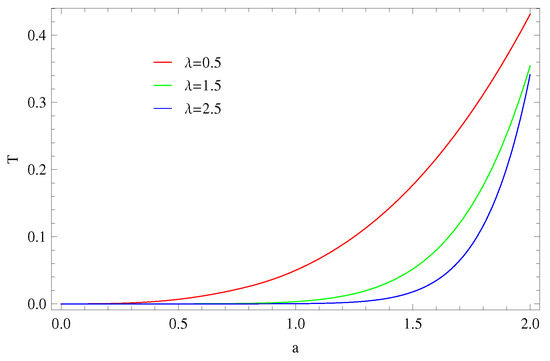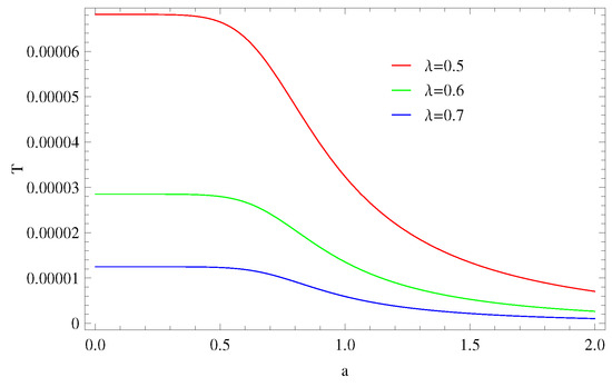 and here, H and are taken from Equations (36) and (38). The plot of versus a for three different values of of Model 3 is shown in Figure 15, which shows the validity of the thermal equilibrium in the range of .