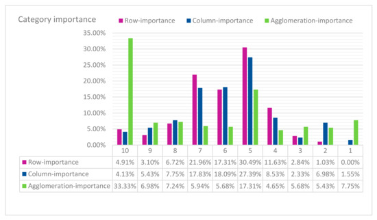 For the preferential seat assignments case, we considered the data extracted through a questionnaire in Delcea et al. [8]. In that study, the row preference (see Figure A11 in Appendix B), column preference (see Figure A12 in Appendix B), and category importance of passengers (see Figure 9) was determined.