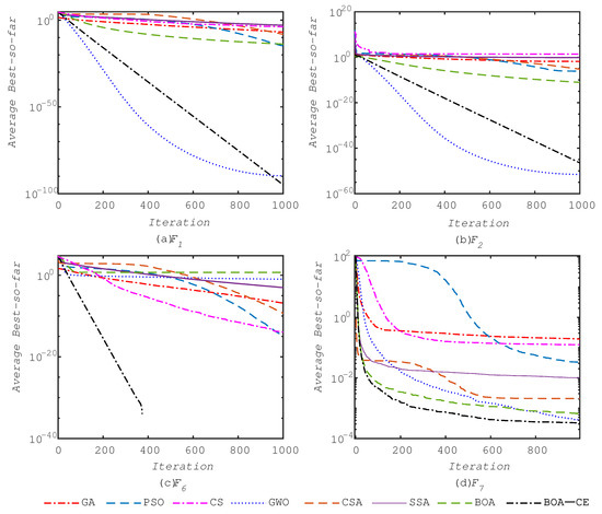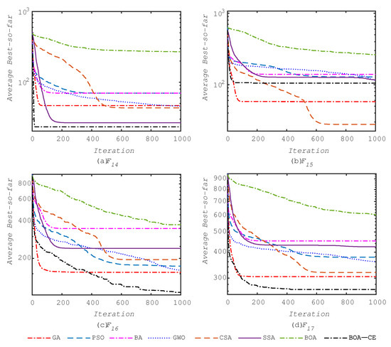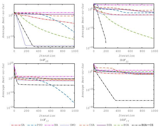 | Fun. | GA | PSO | BA | GWO | CSA | SSA | BOA | BOA-CE |