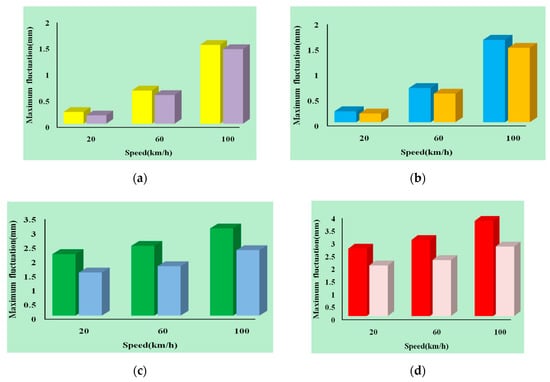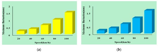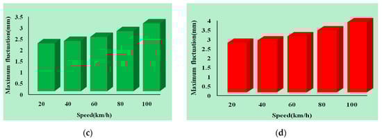 In order to verify the rationality of the above analysis, we conduct a series of simulations and investigations to achieve the relationship of the maximum fluctuations of suspension gap and speeds. The maximum fluctuation of the suspension gap at five different speeds is shown in Figure 11.