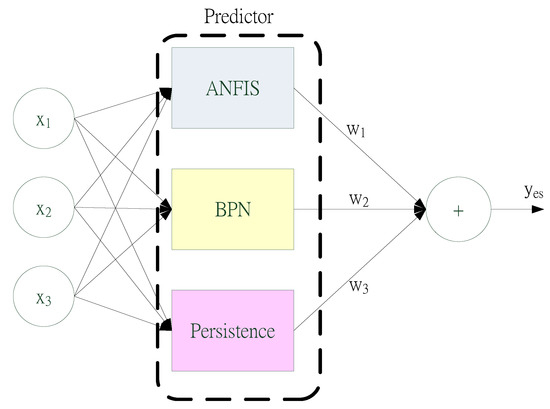 Figure 4 shows the diagram of the proposed predictor for an ultra-short-term power load forecasting. In Figure 4, this paper integrated three methods, ANFIS, BPN and persistence, into the predictor. Each method was a suboptimal solution, attached with a weight (0 wi 1, i = 1,2,3); w1 + w2 + w3 = 1; and the output yes was evaluated as Equation (7).
