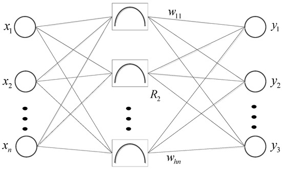 The basic idea of RBF neural network is to use radial basis function as node activation function of hidden layer and map input vector to hidden space, so that the low-dimensional linear non-separable data of input layer can be mapped to the high-dimensional data of output layer, and the data can be linearly separable in high-dimensional space [34]. The topology of the RBF network is shown in Figure 2.