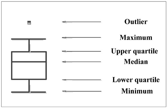 A box-plot consists of five statistics in the data: upper limit (Maximum value in non-abnormal range), upper quartile, median, lower quartile and lower bound (Minimum value in non-abnormal range). It is a method for describing data, which can be used to identify data outliers, compare the shapes of several batches of data, and so on. As shown in Figure 3. Hua et al. use box plots to identify abnormal conditions in the ethylene production process [35]. Liu et al. used box plots to denoise the original signal of the bearing [36]. This paper uses it as an adaptive threshold to determine the data outliers. The abnormality data in the bearing life is identified by the data of the performance degradation index, and the fault diagnosis is performed.