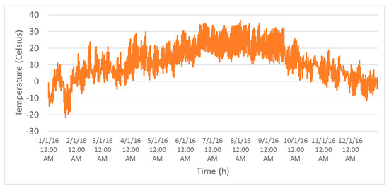 A 12-month energy dataset of [25] from a large hypermarket was used in this study. An hourly energy consumption collected via a smart metering device and hourly temperature records retrieved from meteorological sensors are shown in Figure 2 and Figure 3, respectively. During the sunny days of the year between June to September, the energy load consumption is relatively high due to the prevalent use of air conditioning units in response to the high temperature.
