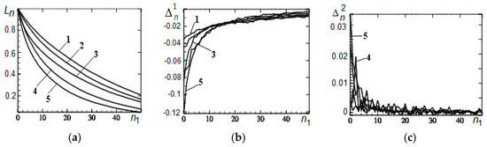 Figure 1 and Figure 2 show the results of numerical simulation. Here, curves 1 are for the fourth-order generalized normal distribution, curves 2 are for the normal distribution, curves 3 are for the Weibull distribution, curves 4 are for the Laplace distribution, and curves 5 are for the exponential distribution.